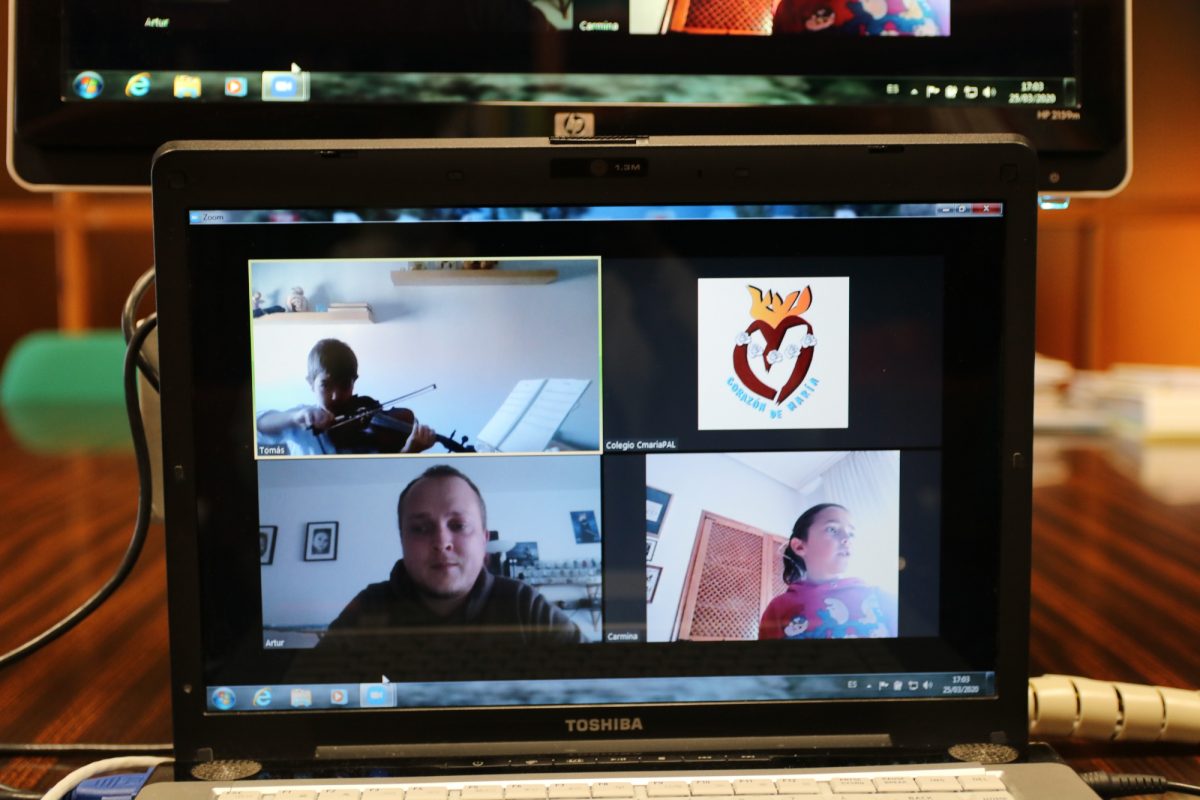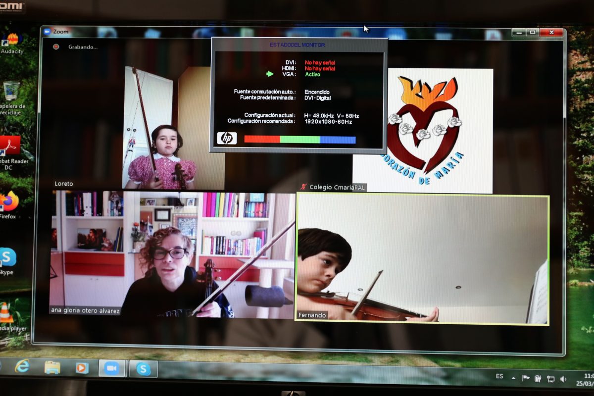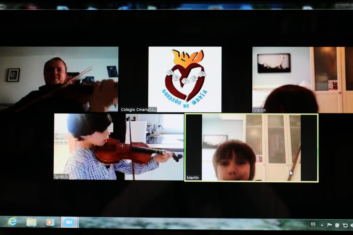 Al lo largo del día de hoy hemos podido ejecutar todas las clases de violín que teníamos programadas y lo hemos hecho gracias a las nuevas tecnologías pero, sobre todo, al interés de las familias, los profesores y toda la comunidad educativa, que sigue trabajando para reforzar lo aprendido y para que los alumnos adquieran nuevos conocimientos y destrezas a pesar de la situación de confinamiento que vivimos.