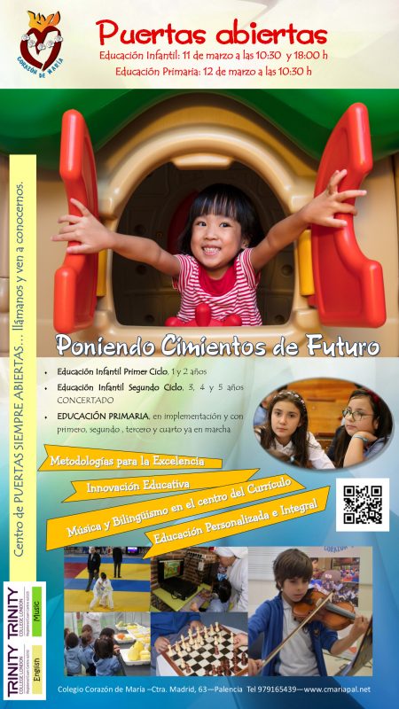 Para aquellos que no puedan asistir estos días y en el horario previsto, os recordamos que Corazón de María continuará recibiendo a cuantos quieran acercarse a conocernos durante todo el período de elección de centro, concertando la cita telefónicamente.