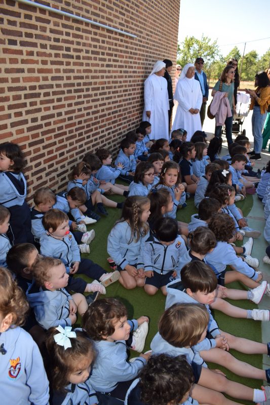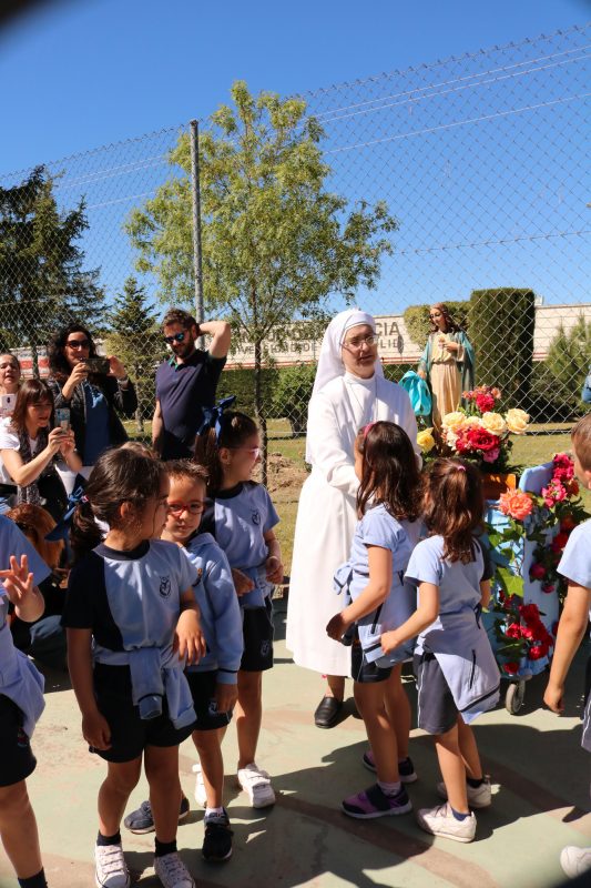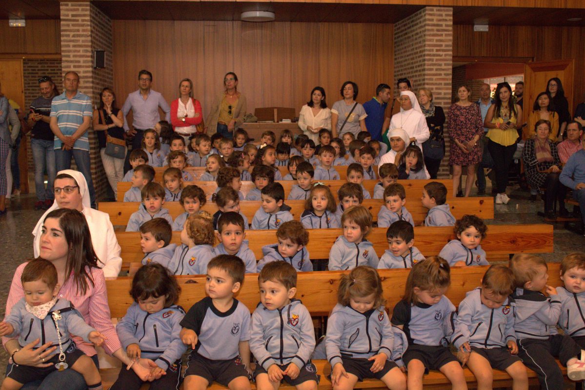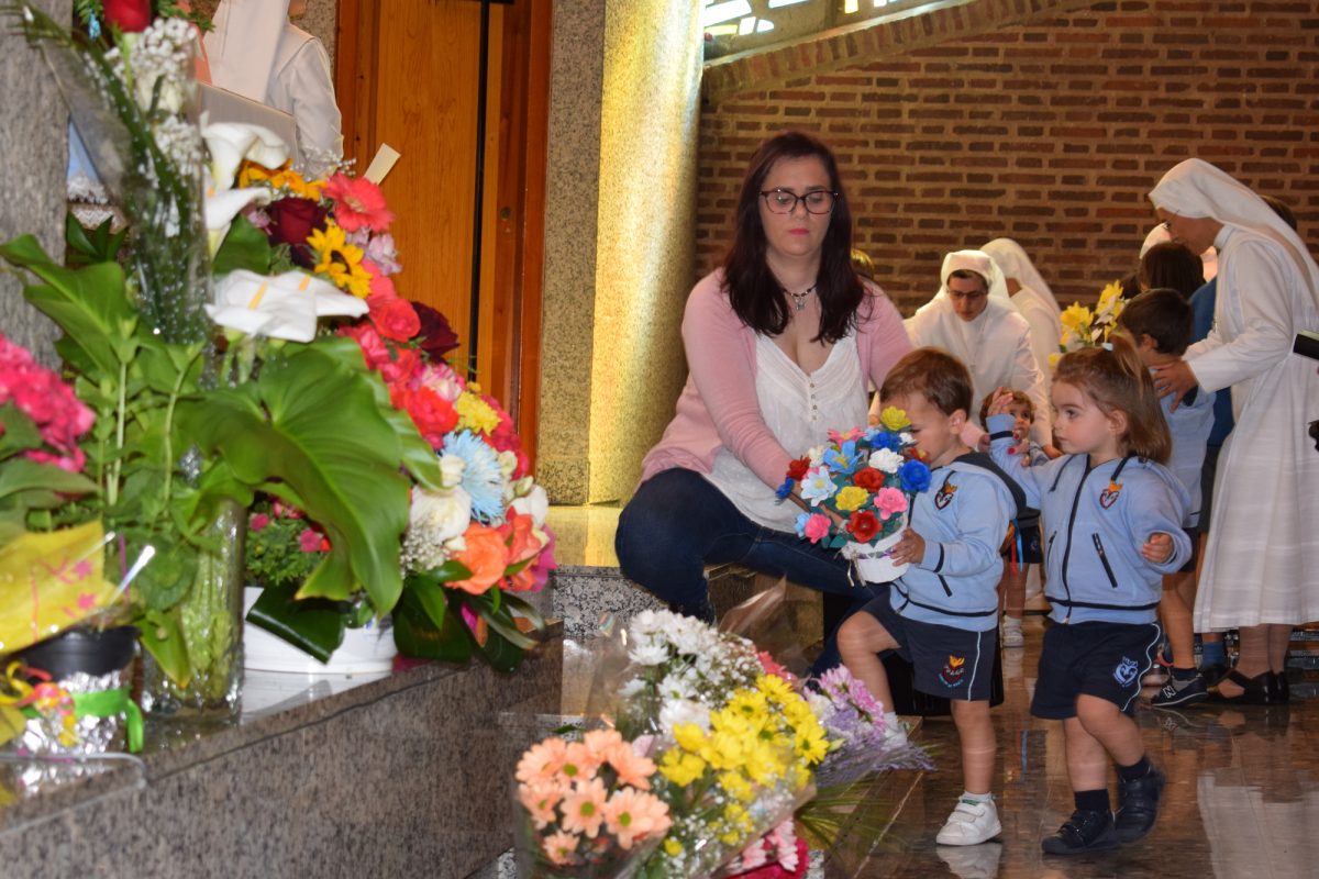 La capilla ha sido el primer escenario de este solemne acto en el que, además de la presentación de las flores y las ofrendas, los niños han dedicado unas hermosas poesías a la Virgen, a la que también hemos acompañado en procesión por el patio del colegio.