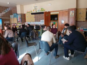 Durante la mañana, algunas Hermanas atienden a los padres y madres, ofreciendo escucha y orientación sobre cuestiones relacionadas con la educación de los hijos, así como sobre aspectos de interioridad y crecimiento personal. Es un tiempo de diálogo sereno, de poner nombre a las inquietudes y de buscar luces concretas para el día a día del hogar.