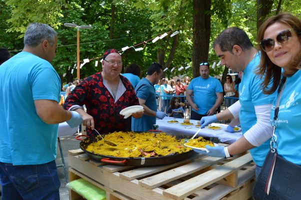 Con la marcha de los niños y niñas por la ciudad y la venta en el mercadillo solidario organizado por los padres, se daba comienzo a este I Encuentro de M&P que contaba además con la atracción de los hinchables, Masterclass de Yoga para adultos y niños y la gran paellada para la que se vendieron cerca de 500 tickets.