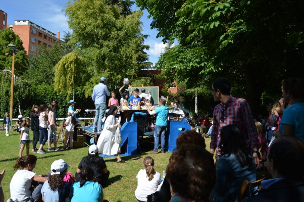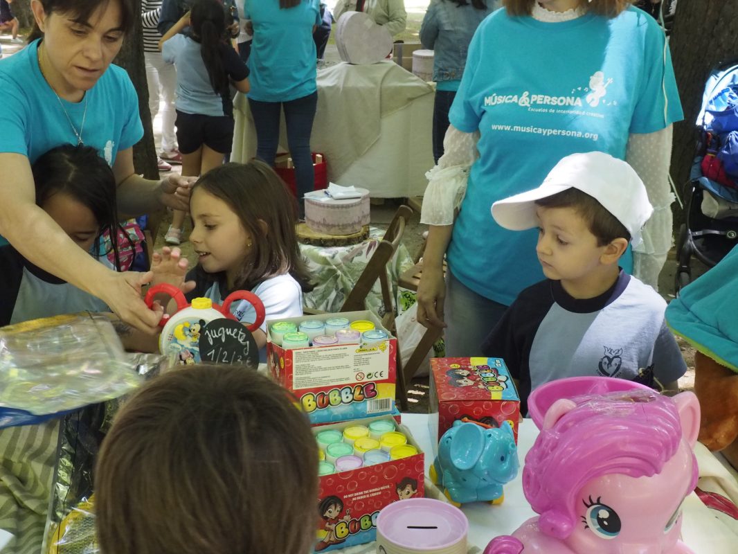 Café y pastas, cuentacuentos y actividades muy variadas se sucedían en una tarde en la que también hubo rifa de todas las donaciones recibidas y más música, a cargo de los integrantes del grupo Chelo Submarine, que pusieron el colofón a una jornada magníficamente organizada, que ha dejado a todos con ganas de repetir. Y es que ha sido la gran solidaridad mostrada por las más de 60 entidades participantes y, sobre todo la implicación de las familias, lo que convirtió el acto en todo un acontecimiento y permitió que reinase un extraordinario ambiente de convivencia que todos hemos podido disfrutar y que nos hace sentirnos orgullosos de esta comunidad educativa a la que pertenecemos y del Proyecto Música y Persona que con tanto esfuerzo estamos levantando entre todos.