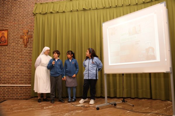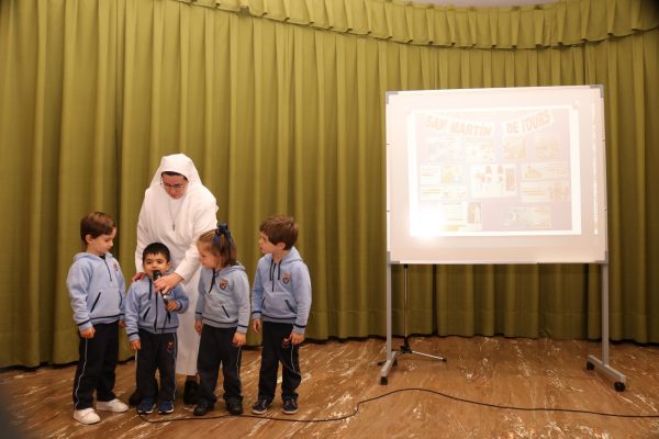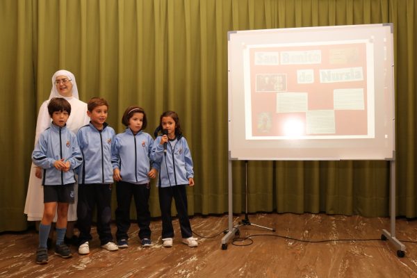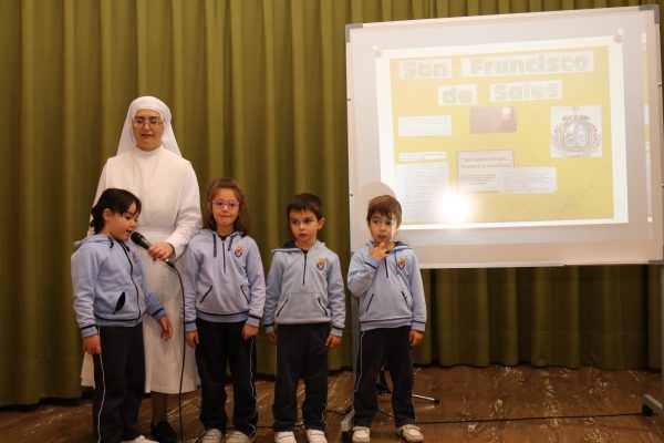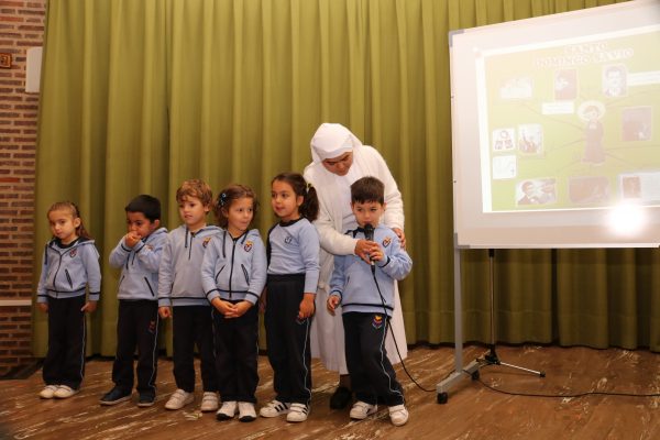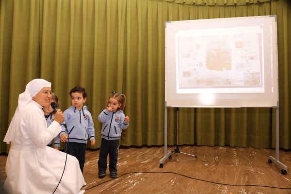 Todo el colegio se ha reunido esta mañana en el salón de actos para reconocer el verdadero sentido de esta fiesta en nuestra cultura y nuestra tradición cristiana, una celebración que pone el broche a toda una semana dedicada a recordar las vidas ejemplares de santos muy concretos y muchos de ellos relacionados con los valores de sostenibilidad y ecología que se trabajan este año en la programación anual de centro.